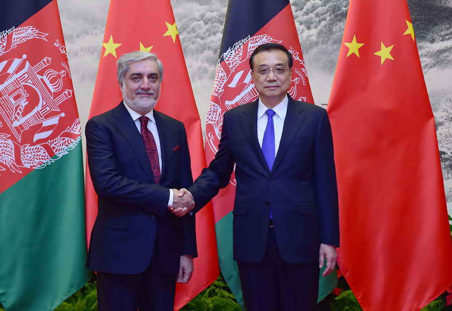 Chinese Premier Li Keqiang holds a welcoming ceremony for visiting Afghan Chief Executive Abdullah Abdullah on May 16, 2016 in Beijing, capital of China. [Photo: Xinhua]