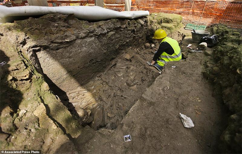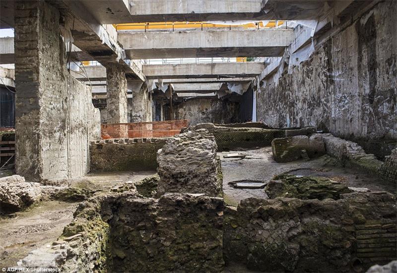 Officials hope to incorporate the discovery into the new metro station, which is scheduled to open in 2020. A view of the remains of the ancient Roman barracks, pictured above