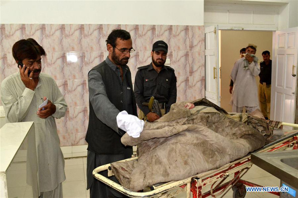 A doctor examines a dead body shifted to a civil hospital in southwest Pakistan's Quetta, May 22, 2016. Bodies of two people who are suspected to be killed in a Saturday U.S. drone strike in Pakistan have been shifted to a hospital in Quetta for DNA test. Afghan Taliban top leader Mullah Akhtar Mansoor was reportedly killed by a U.S. drone strike launched at a small town in Pakistan's southwest province of Balochistan along the Pak-Afghan border, reported local Urdu TV channel ARY on Sunday. [Photo: Xinhua]