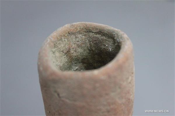 Photo provided by Jiajing Wang of the Stanford University shows the funnel for beer brewing from Mijiaya. People in ancient China might have started enjoying the delights of beer as far back as 5,000 years ago, according to the report released by Chinese and U.S. researchers. In the new study, researchers excavated two subterranean pits dated to around 3,400 to 2,900 B.C. at Mijiaya, an archaeological site near a tributary of the Wei River in northern China. [Photo: Xinhua]