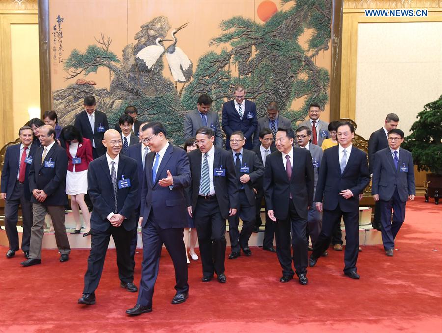 BEIJING, May 31, 2016 -- Chinese Premier Li Keqiang (front) talks with delegates from the annual board meeting of the Asia News Network (ANN) at the Great Hall of the People in Beijing, capital of China, May 31, 2016. (Xinhua/Yao Dawei)