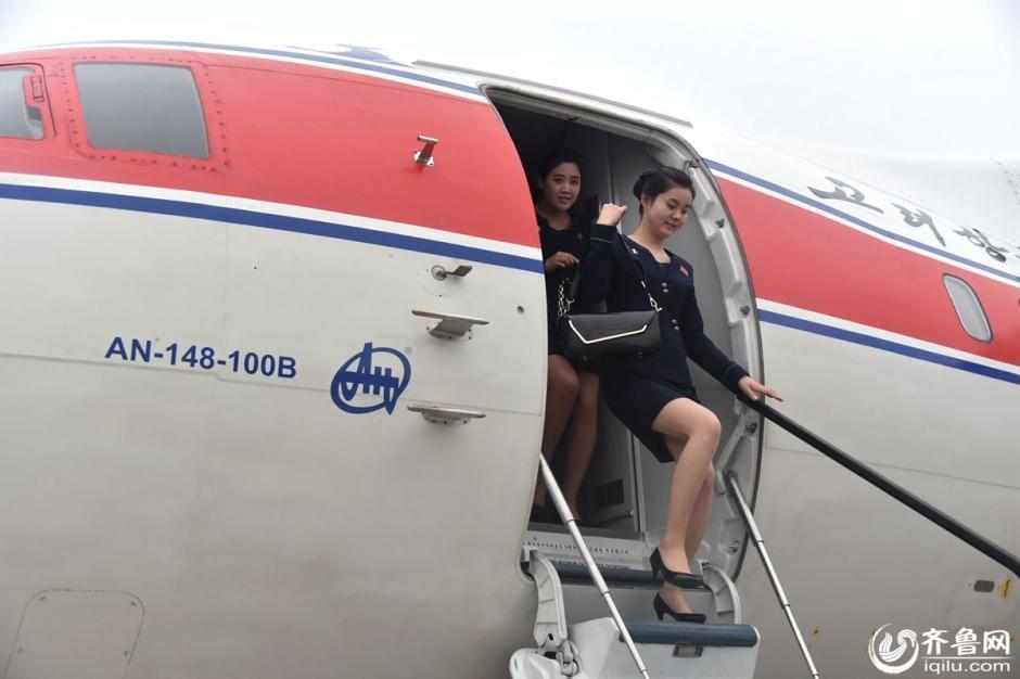 Air Koryo of the Democratic People's Republic of Korea officially launched direct flight between Pyongyang and Jinan City of eastern China's Shandong Province on Tuesday. Cabin crew in blue uniforms appeared at Jinan Int'l Airport.(Photo/iqilu.com)