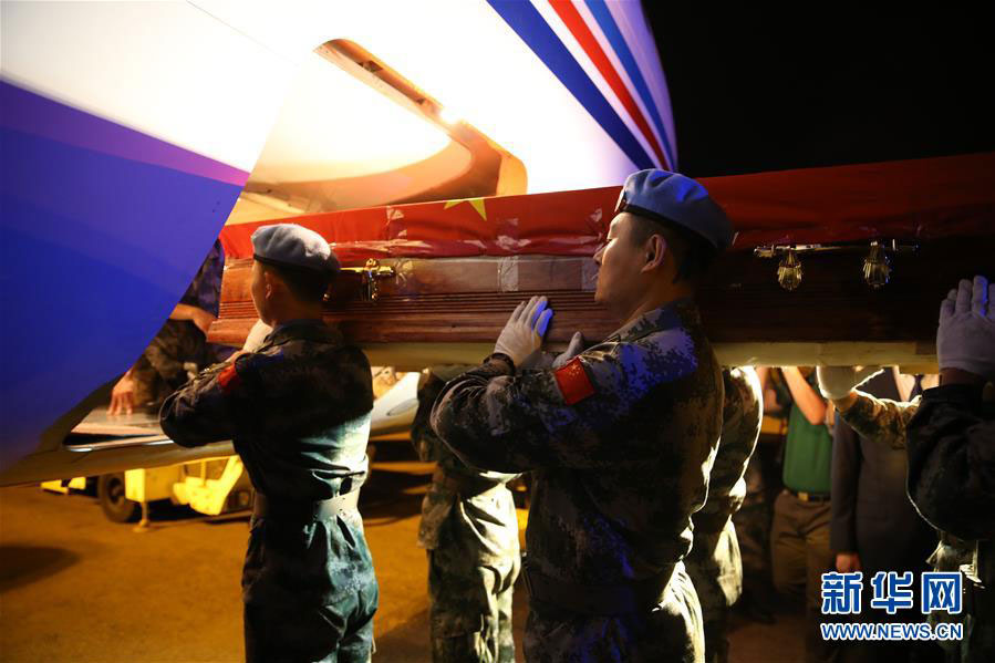 Body of Chinese Peacekeeper Being Flown back to China (2)
