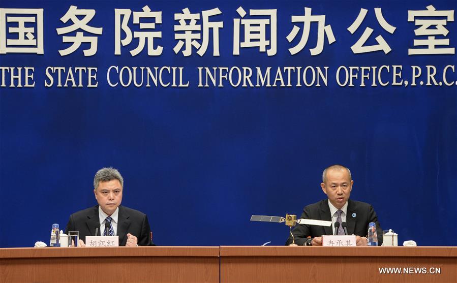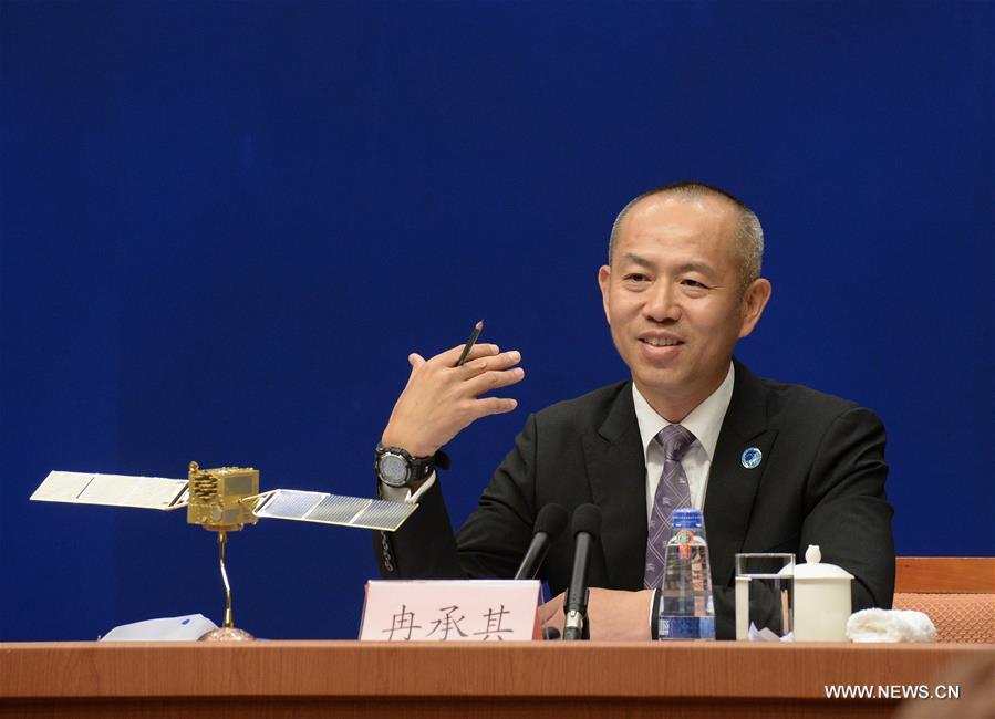 Ran Chengqi (R), spokesman for the BeiDou Navigation Satellite System (BDS), addresses a press conference on the development of the BDS in Beijing, capital of China, June 16, 2016. The Chinese government on Thursday released the white paper about the development of the BDS, which is independently developed and operated by China. (Xinhua/Li He)
