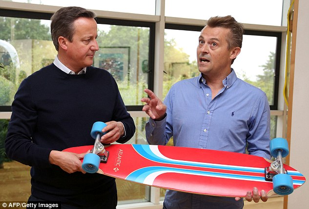 Mr Cameron, seen inspecting a skateboard with Shiner chief executive Charlie Allen, said Britain would be 'bigger and better' if it stayed in the EU