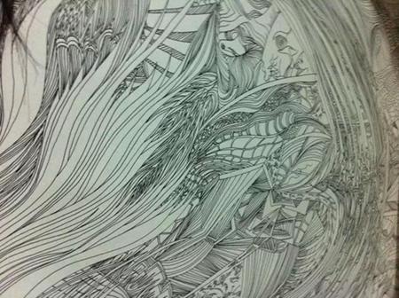 Looking at Wang Hua’s drawings, you probably would never think that her highest education would be elementary school. Her drawings are usually more than 10 meters long. Countless lines combine into mysterious graphic patterns. No starting point, no terminal point.