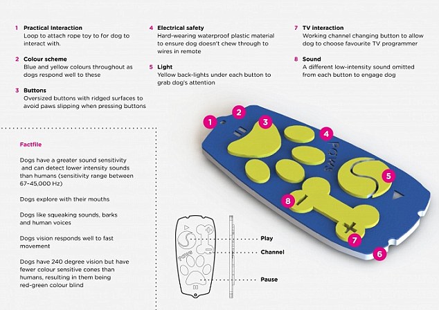 Teaching all dogs new tricks: Researchers have created a mat-like device with extra-large controls and a multi-coloured design to help them see – and it also comes with a paws button, of course.