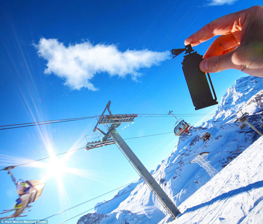 Taking to the slopes in Val D'Isere, Rich placed a spray can next to a cloud - with mesmerising results.