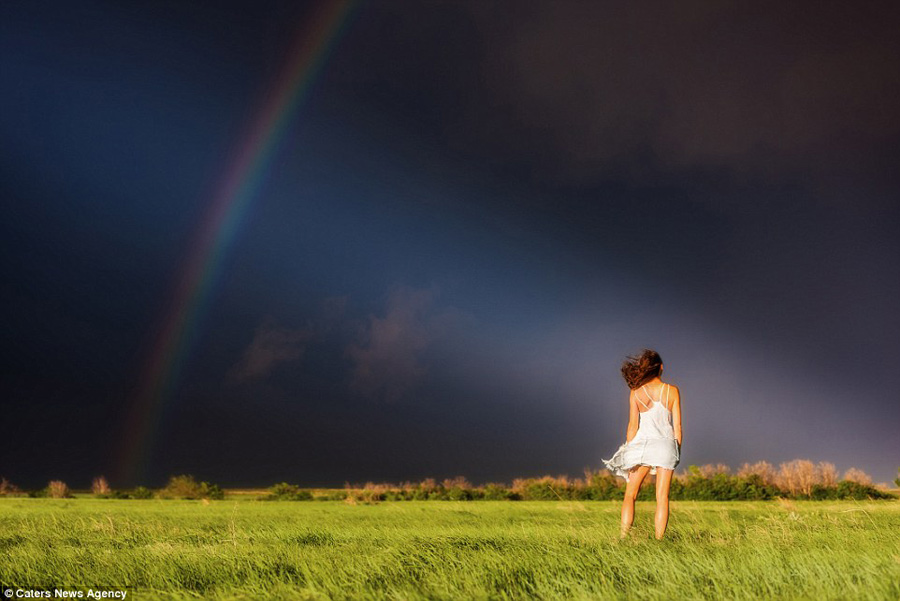 Pot of gold! The dark black sky and even a rainbow provided an incredibly backdrop for Ms Brentano's photoshoot.