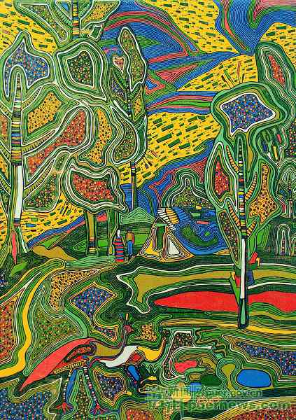 Originating from the region of Pu’er during the 1980s, the block printing woodcut is a new technique for printmaking. All color plates of a picture is concentrated on one plate, and the mode of creation is adopted, with which a picture is carved while being printed, and diminished plate by plate. The process of printmaking is a process that a print is destroyed naturally without reversal. It is usually called out-of-print mimeographed chromatographic woodblock print that is different from traditional plate-distributed chromatography.