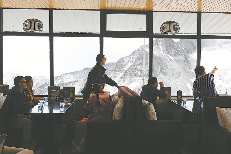 There is a cafe located at an altitude of 4,860 meters on Mount Dagu in Sichuan province. The cafe has a stunning view of Dagu Glacier National Park located in the district of Heishui, and it also boasts the title of highest cafe in the world.