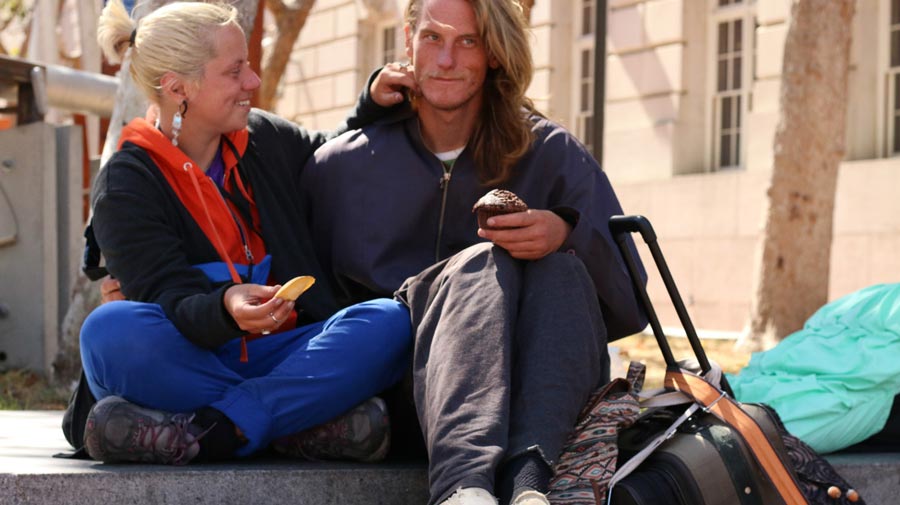 On November 7, 2013, a car accident in Daly City caused Rebecca osteoarthritis and made her disabled from work and school. They moved here from Eureka a week ago to wait for the accident settlement. She said that “I used to be a cashier, waitress, at school. Now no one wants to hire us because of my back problem. I can only earn 2 to 3 dollars per hour by sparing change. We’ve had so many doors shut in our face.”