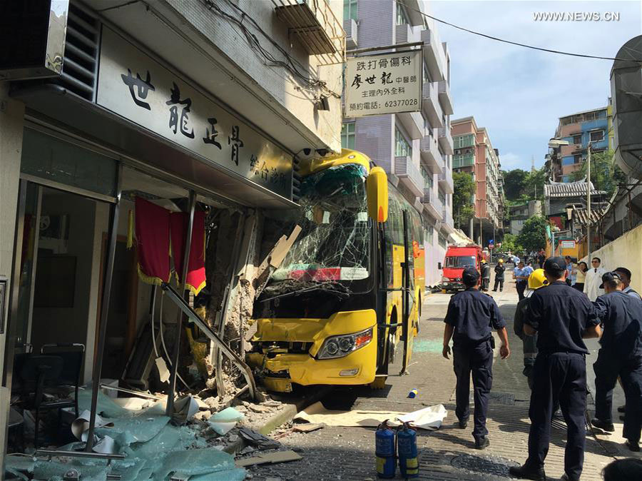 According to Macao Public Security Police Force (PSPF), the accident happened when the bus stopped downslope in a street close to the Ruins of St. Paul, one of Macao's famous tourist attractions. A white van rear-ended the bus and the bus driver got off to check the situation. The bus suddenly moved down through the slope without the driver and rammed into a roadside clinic.