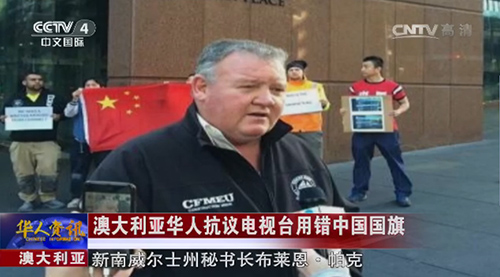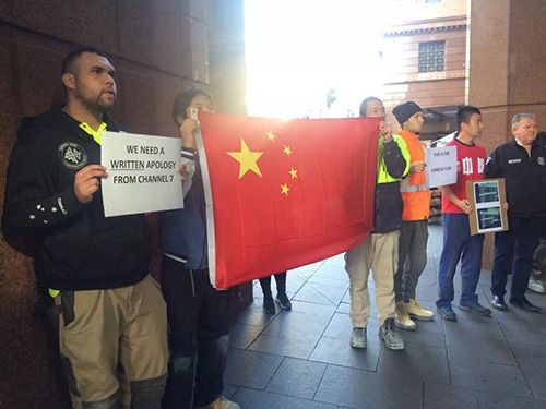 As a result, a number of overseas Chinese recently gathered together with a Chinese flag and demonstrated at the 7 News building in Martin Place to request an apology letter. Some Sydney residents and tourists joined in, and Brian Parker, the secretary of Construction, Forestry, Minning and Energy Union, New South Wales, also participated.