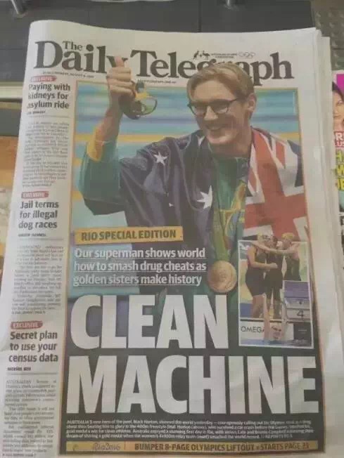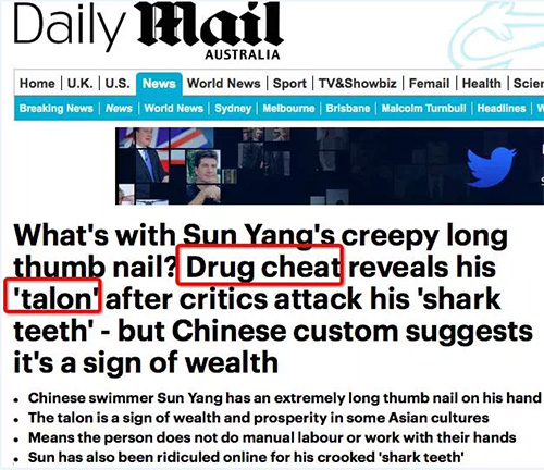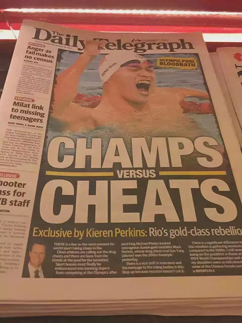 7 News is not the only media outlet allegedly allowing bias into its reporting. Before this, the Herald Sun reported on Sun Yang with the headline "Sickening gesture." The Daily Mail wrote that the so-called drug cheat revealed his "talons," and speculated that Sun must be wealthy. The Daily Telegraph published a front page article in support of Horton, and announced that all the Australian athletes are clean of drugs. Meanwhile, Sun's front page article described a "champions versus cheats" scenario.