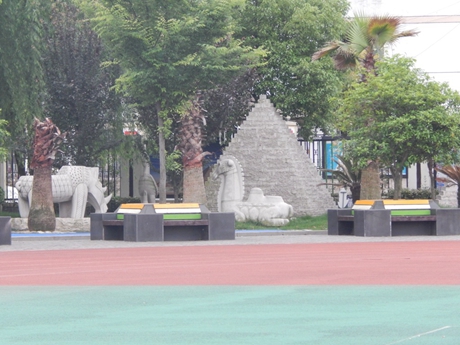 At the park’s entrance are two pillars shaped in form of a hut, a primitive dwelling still in existence in some parts of Africa. Sculptures of wild animals including an elephant, zebra, tiger and lion dot around the park. There is even a replica of the Pyramids of Giza.