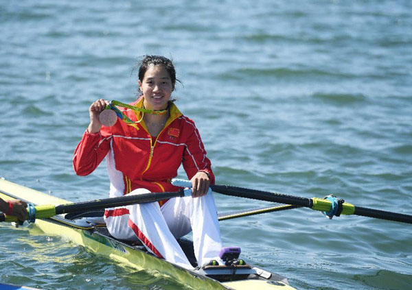 Chinese athlete Duan Jingli gains China's first medal in women's rowing single event on August 13, 2016. [Photo: Xinhua]