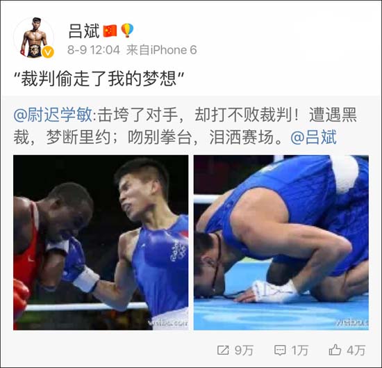 Chinese boxer Lv Bin made his desperate claim on his weibo account after competing in the men's light fly of the 49kg category preliminary boxing event at the Rio Olympics on August 8, 2016.