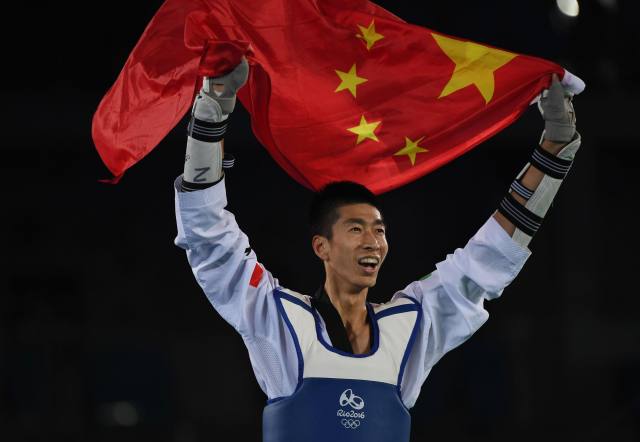Zhao Shuai of China won the men's under-58kg Olympic taekwondo title on Aug. 17, beating Thailand's Tawin Hanprab 6:4 in the final. This is China’s first men’s taekwondo Olympic gold medal.(Photo/Xihua)