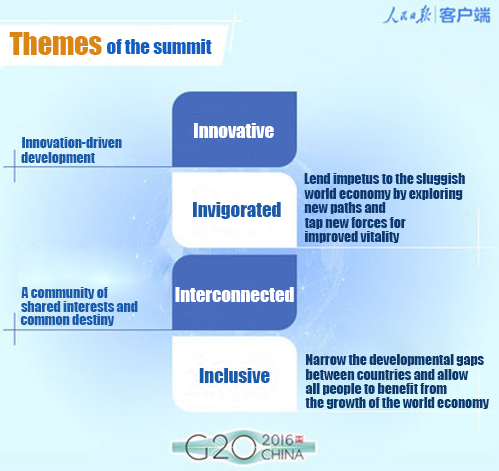 The G20 summit will begin in Hangzhou on Sept. 4. President Xi Jinping will attend, together with other leaders from G20 members and guest countries and executive officers of international organizations. The theme of the summit is building an innovative, invigorated, interconnected and inclusive world economy. Take a peek at the infographics below for a one-minute primer on the summit.