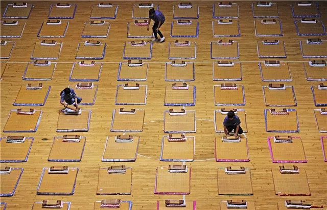 After setting up the dormitories for their kids, many parents traveled from afar chose to stay for one day or two in Xi'an because few of them snatched the tickets back home on the same day. The school hence set up places for parents on budget to sleep in the stadium.
