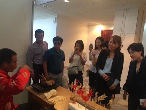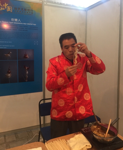 Artist using heat and maltose to make sugar art