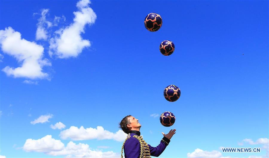 Acrobat Victor Rubilar from Argentina performs during the media day sneak peek of the 17th annual Toronto International BuskerFest at Woodbine Park in Toronto, Canada, Sept. 1, 2016. Featuring hundreds of best street performers from around the world, the annual street busker festival is expected to draw millions of spectators and help raise funds for Epilepsy Toronto. (Xinhua/Zou Zheng)