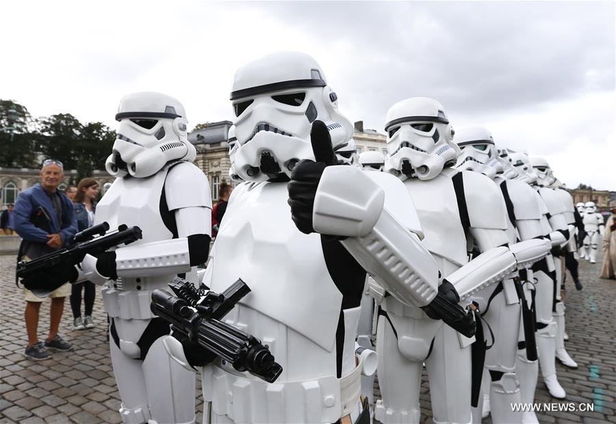 People dressed as Star Wars stormtroopers take part in the Balloon's Day Parade during comic strip festival "Fete de la BD" in downtown Brussels, Belgium, Sept. 4, 2016. (Xinhua/Ye Pingfan)
