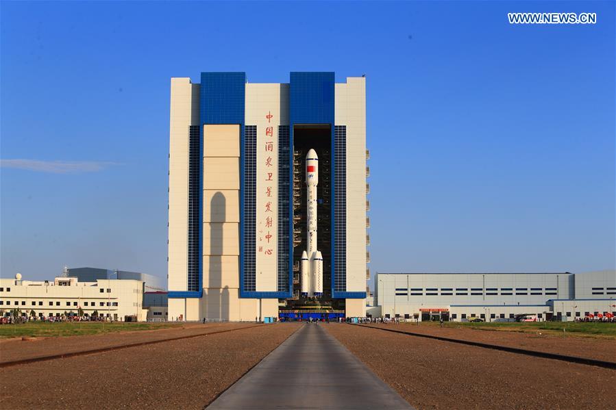 The Tiangong-2 stands with its carrier rocket on the launch pad at Jiuquan Satellite Launch Center in Jiuquan, northwest China's Gansu Province, Sept. 9, 2016. China's second space lab Tiangong-2 is scheduled to be put into space between September 15 and 20, according to the office of China's manned space program. (Xinhua/Yang Zhiyuan)