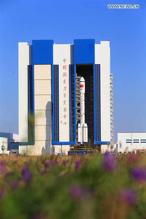 The Tiangong-2 stands with its carrier rocket on the launch pad at Jiuquan Satellite Launch Center in Jiuquan, northwest China's Gansu Province, Sept. 9, 2016. China's second space lab Tiangong-2 is scheduled to be put into space between September 15 and 20, according to the office of China's manned space program. (Xinhua/Yang Zhiyuan)