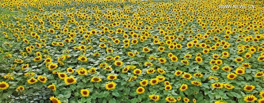 Photo taken on Sept. 12, 2016 shows sunflowers at a park in Heping District in Shenyang, capital of northeast China's Liaoning Province. (Xinhua/Yang Qing)