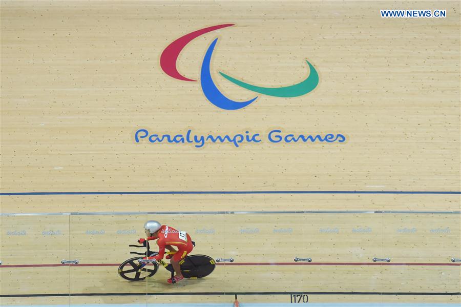 Li Zhangyu of China competes during the Men's C1-2-3 1000m Time Trial at the Rio 2016 Paralympic Games in Rio de Janeiro, Brazil, Sept. 10, 2016. Li Zhangyu claimed the title and broke the world record. [Photo:Xinhua]