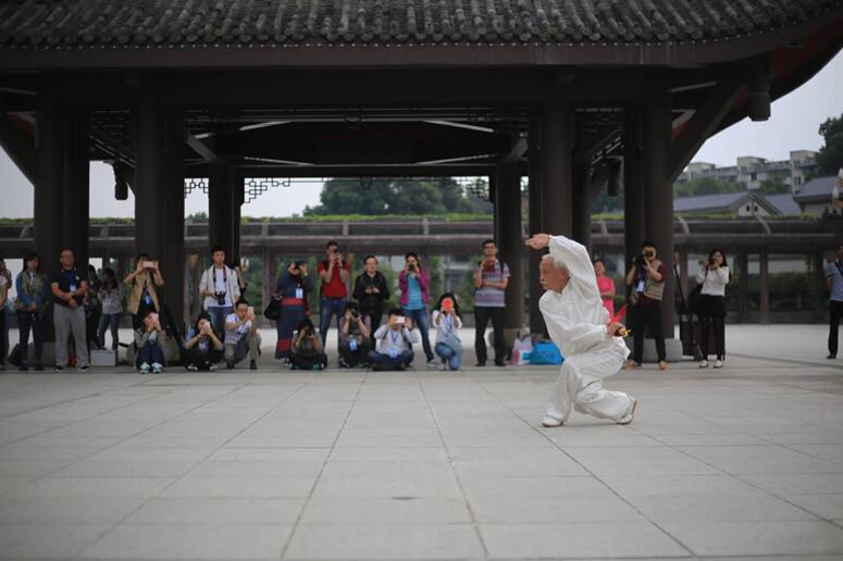 Yang Rui, 64, practices Emei knife skills with fully extended movements and many ups and downs. Since the age of 13, he has been honing the skill, which he believeshas benefited his sense of balance and flexibility as he ages. “Knife skillsare characterized by the movement of hands and feet, especially the motions of feet changing constantly, quickly and forcefully. The changing styles take both offence and defense into consideration,” Yang explained. [Photo provided to people.cn]