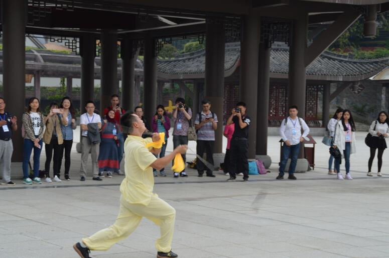 A practitioner performs a nine-section chain whip, which produces a rushing sound as the whip swings through the air. [Photo provided to people.cn]