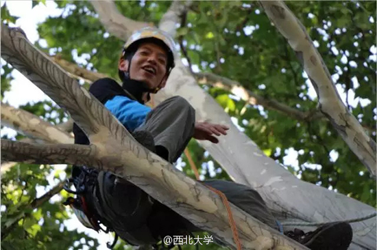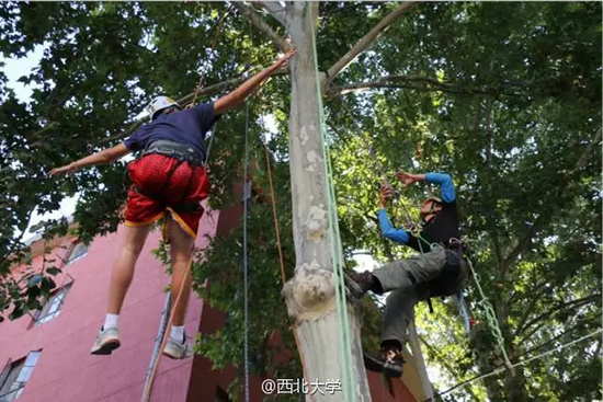 Li explained that students first proposed such a course two years ago. Northwest University is the first school in the northwestern provinces and the second school in China to introduce a tree-climbing course so far. Xiamen University was the first to try it.