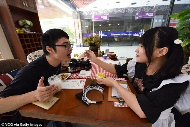 A bizarre pop-up cafe has opened up in China which has waitresses that dress up as maids and serve customers.