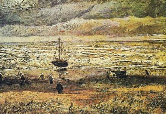 "Seascape at Scheveningen" is a landscape Van Gogh painted in 1882, while living in The Hague. The canvas is slightly damaged, according to the Amsterdam museum.