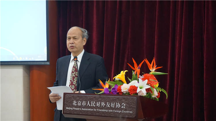 Zhen Jianguo, vice president of the China Society for People’s Friendship Studies, addresses the 17th Edgar Snow Symposium in Beijing on Oct. 11, 2016. [Photo/people.cn]