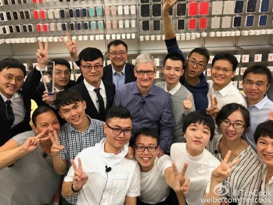 Cook shared a photo of his visit to Apple Store at Holiday Plaza in Shenzhen