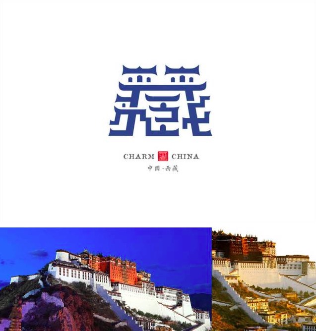 Shi incorporated the shape of the Potala Palace into his illustration, painting his design the color of Tibet’s clear blue sky.
