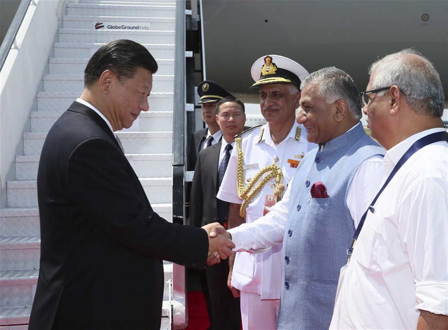 Chinese President Xi Jinping arrives in the western Indian state of Goa, Oct. 15, 2016, for the eighth summit of the emerging-market bloc of BRICS, which groups Brazil, Russia, India, China and South Africa, at the invitation of Indian Prime Minister Narendra Modi. (Xinhua/Lan Hongguang)