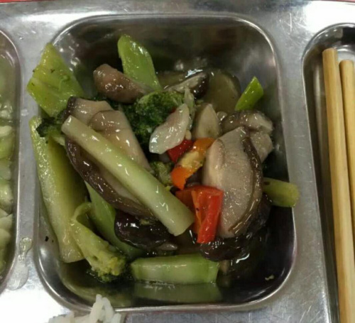 Li Jianhong, manager of the cafeteria, described "thin blue mushroom" as a vegetable dish featuring stir-fried broccoli and mushrooms. The "blue" stands for broccoli, since Chinese for the color blue (lan) shares the same pronunciation a character in the Chinese for broccoli (xi lan hua). Li explained that students are likely to be attracted by the dish's name, and the components of the dish are quite healthy.