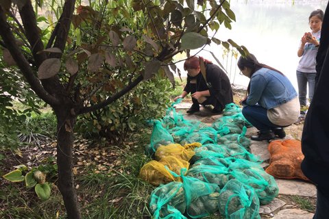 A recent post of a Peking University online forum revealed that six women attempted to release around 500 live Brazilian turtles into a lake on campus of the university but were eventually prevented by several students. [Photo:weibo.com]
