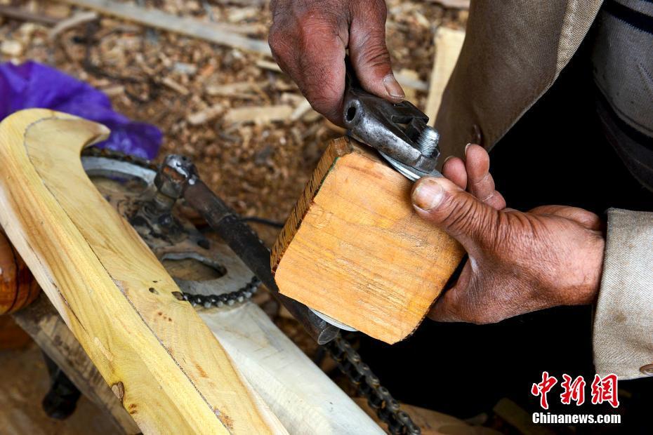 A woodworker for over 50 years, 67-year-old Mamatta Sadi from Avati County Xinjiang Uyghur Autonomous Region tested his purely hand-made wooden bicycle on the road attracting many onlookers. The bike is 2.8 meters long, 1.3 meters high, and except for a few metal pieces including more than 10 screws and bearding, the whole bicycle is made of wood. The bicycle took Sadi more than one month to complete, but he says it's not completely finished yet. He intends to add a bell, proper rubber tires and some iron pieces to strengthen the bicycle. [Photo: Chinanews.com]