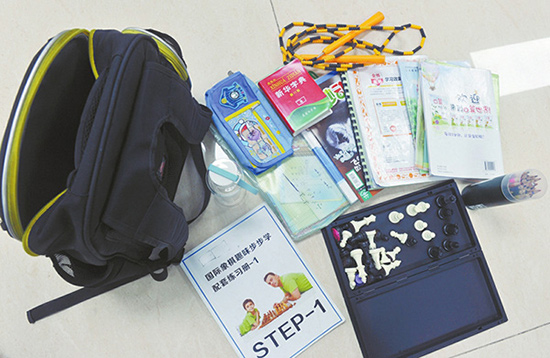 A second-year student, Yuanyuan, had a schoolbag weighing 5.6 kilograms, filled with textbooks, workbooks, exercise books, stationary and a dictionary. His father, surnamed Yang, explained that Yuanyuan participates in extracurricular courses including international chess and soccer. On days when he attends these courses, Yuanyuan’s schoolbag is even heavier, as he has to bring his chess set and a ball.