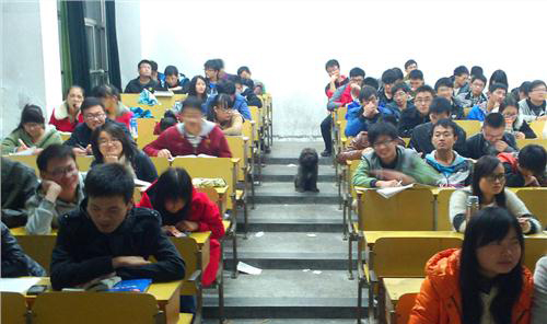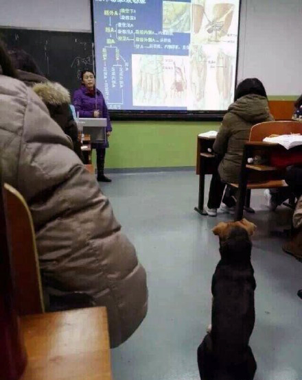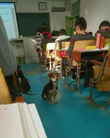Before this incident, animals at other universities have also made classroom cameos. A dog attending class and running around the playground at Wuhan University went viral online in December 2015.