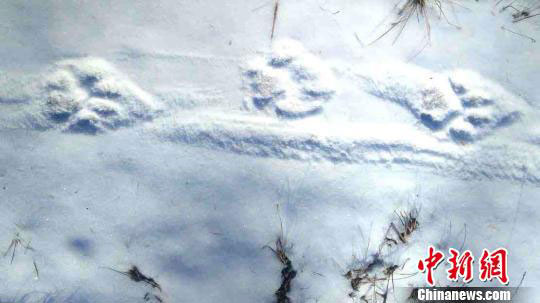 Footprints left by a wild Siberian tiger in a forestry farm in the northeastern province of Heilongjiang found on October 23, 2016. [Photo provided by Heilongjiang Provincial Department of Forestry]