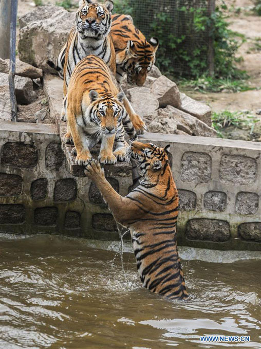 Siberian tigers born in captivity play at the Siberian Tiger Park in Hengdaohezi Township of Hailin City, northeast China's Heilongjiang Province. [Photo: Xinhua]