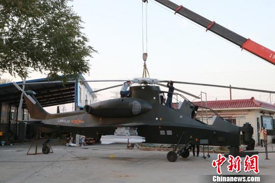 According to Xu Gaopeng, one of the builders of the model, the helicopter is about 16 meters long and 5 meters high. It took several months and over 200,000 RMB to build. They had to search through more than 40 tons of iron waste to find the suitable parts.