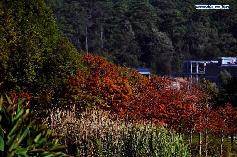 Photo taken on Nov. 11, 2016 shows the scenery of Puzhehei Wetland Park in Qiubei County, southwest China's Yunnan Province. Covering an area of over one thousand hectares, Puzhehei Wetland Park is home to over 200 species of birds. (Xinhua/Yang Zongyou)